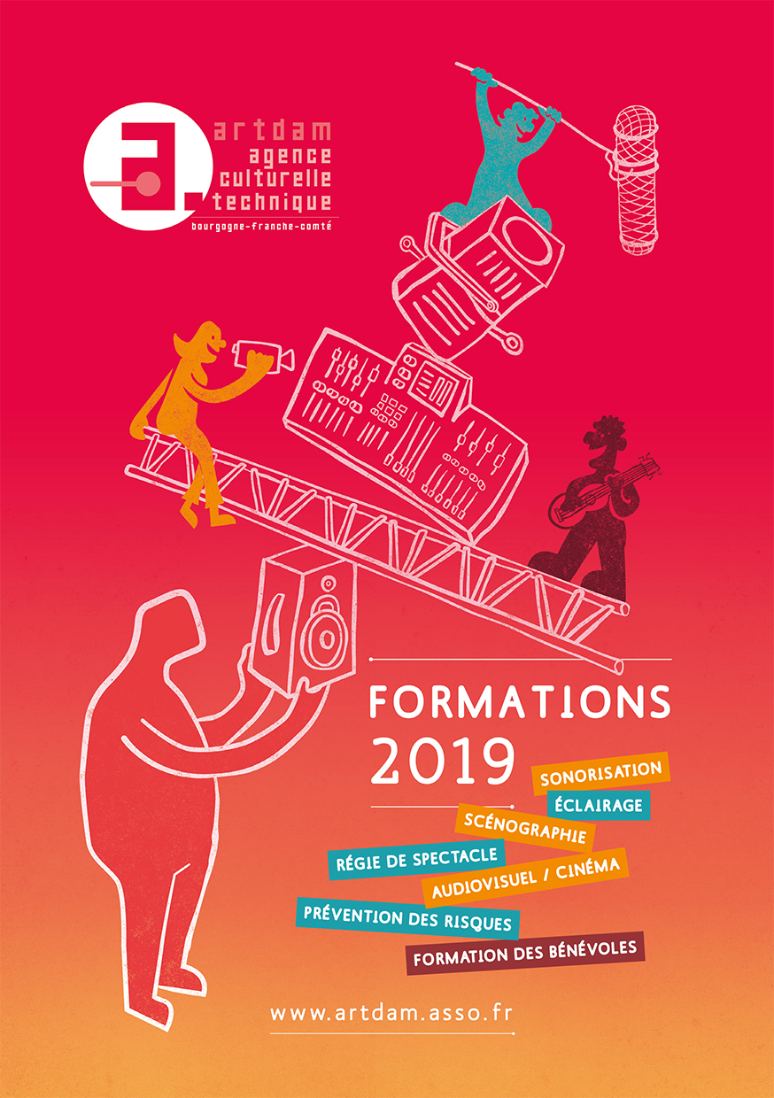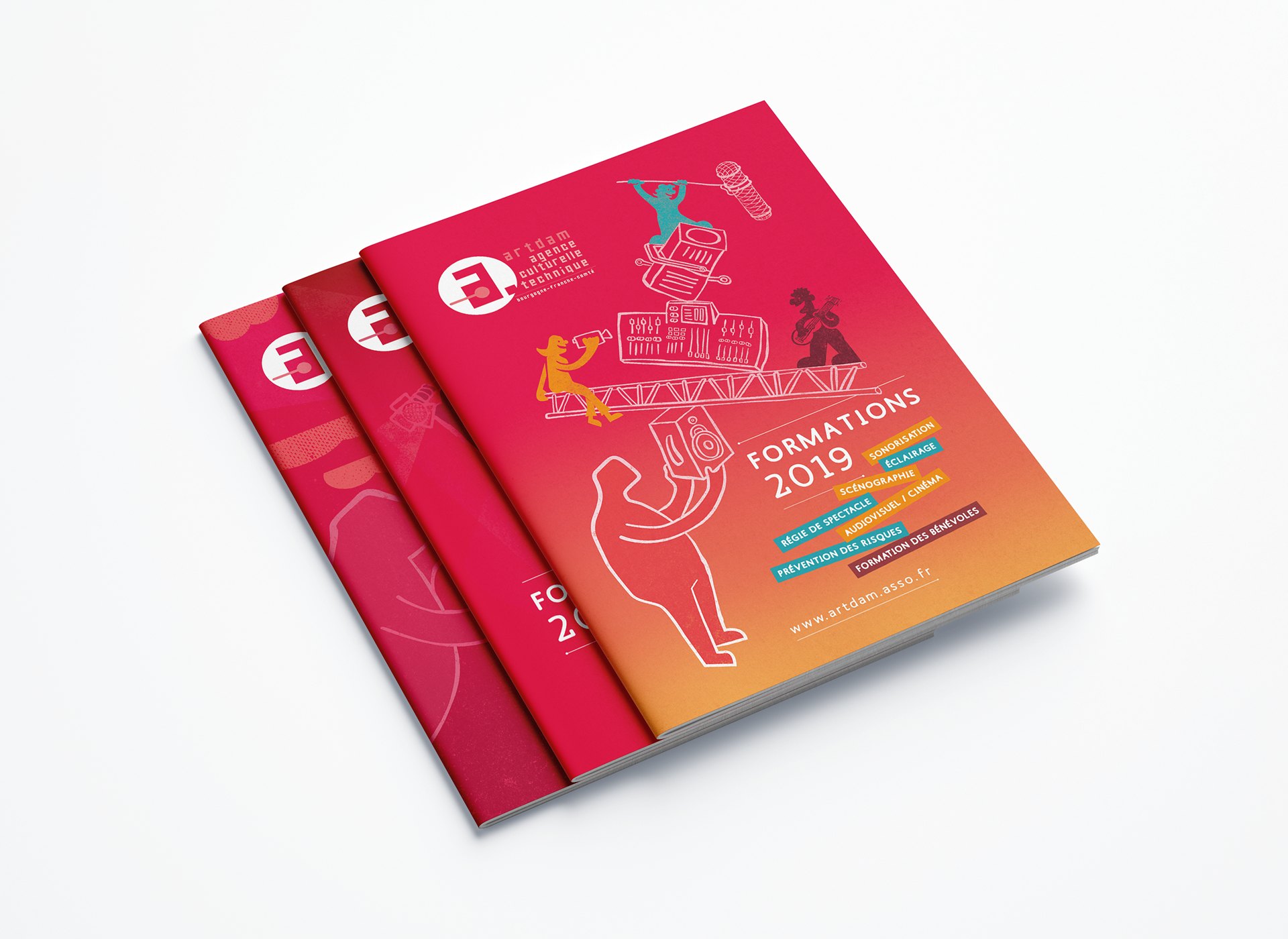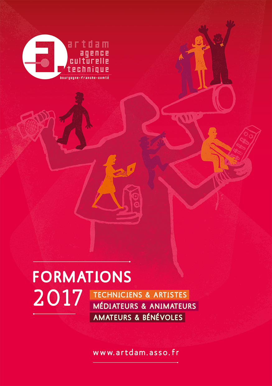 D.A. — illustrations | Univers graphique - affiches - Posters/programme, 8 volets, plis croisés, 140 x 210 fermé, 560 x 420 mm ouvert - brochures A5, 52 pages - flammes.