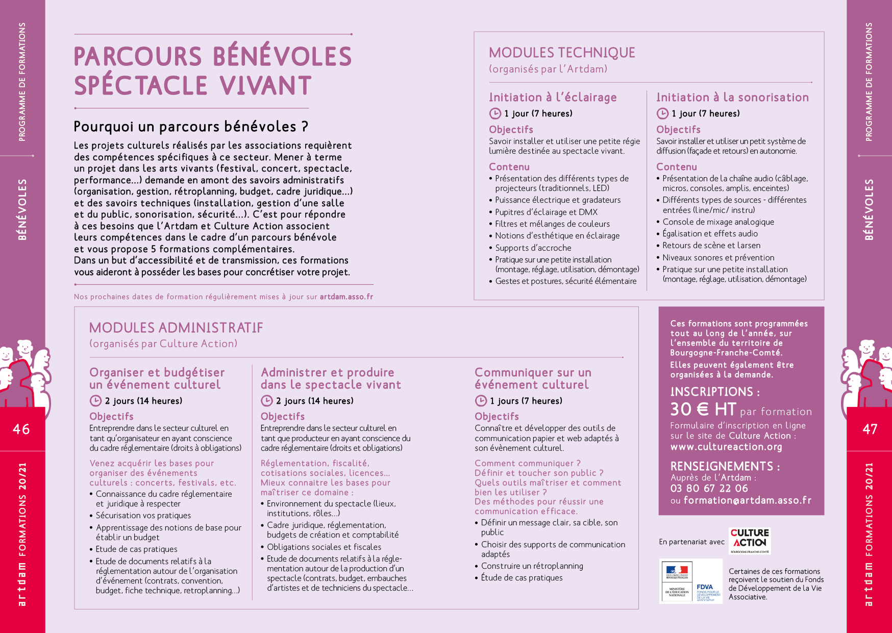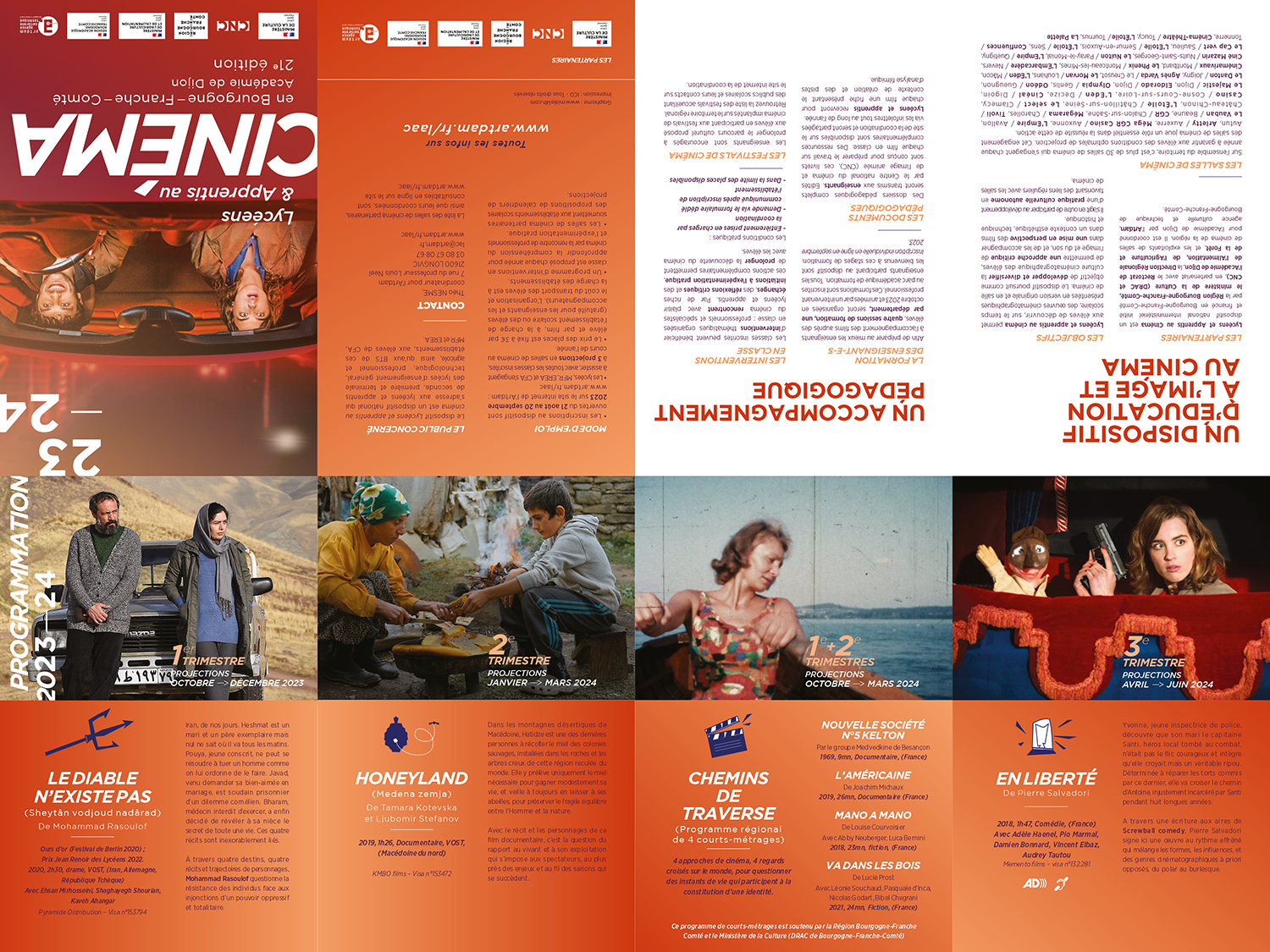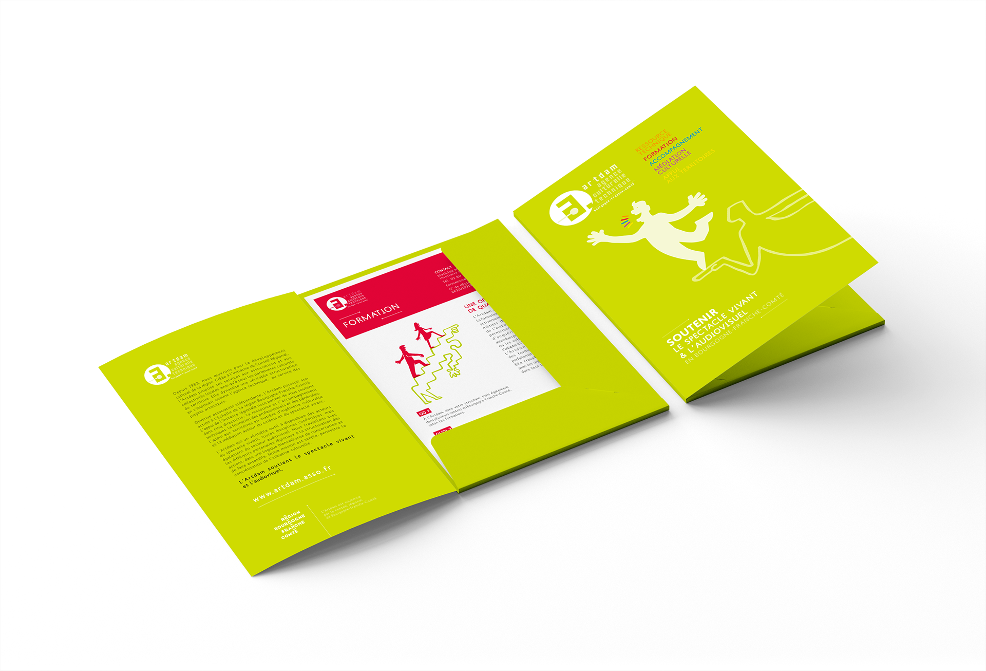 D.A. — illustrations | Univers graphique - affiches - Posters/programme, 8 volets, plis croisés, 140 x 210 fermé, 560 x 420 mm ouvert - brochures A5, 52 pages - flammes.